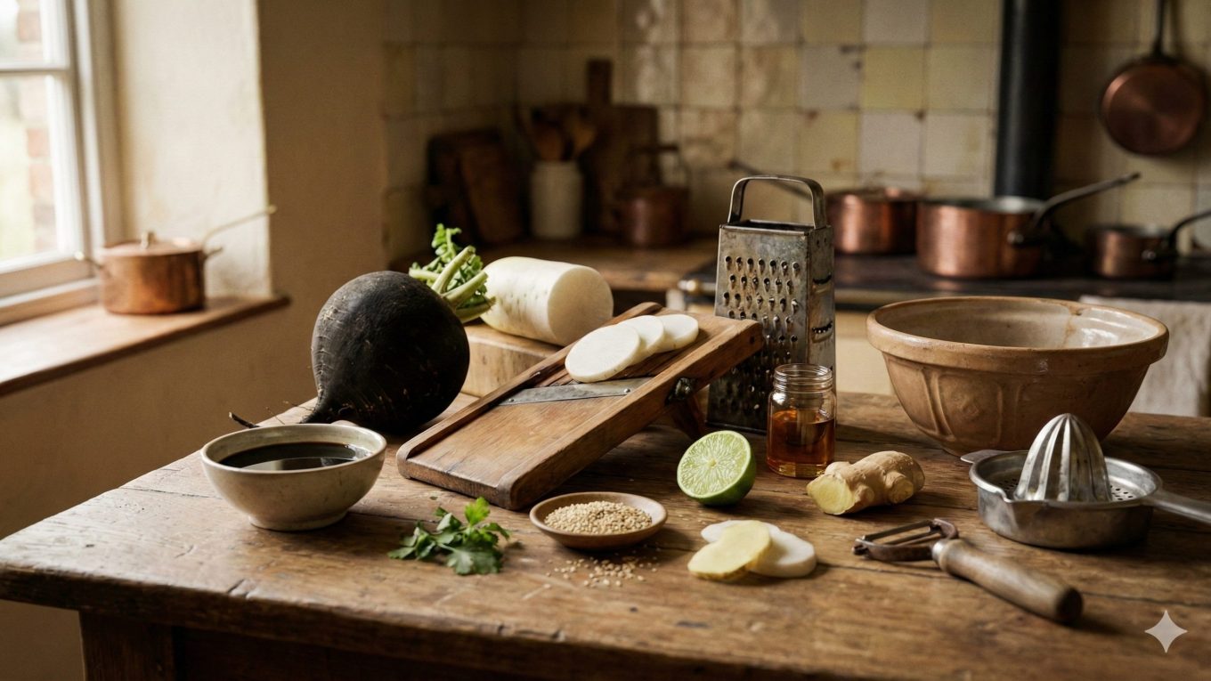 La Salade de Radis « Soleil Levant » « Si nos radis d’hiver sont bien ancrés dans la terre froide de nos potagers,