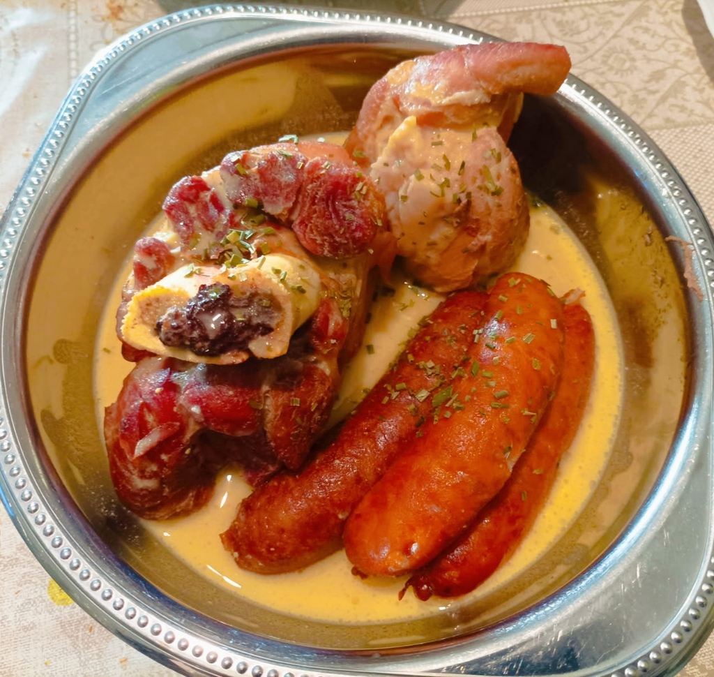 Un plat d’hiver complet et roboratif : une potée généreuse où viandes, légumes et haricots mijotent dans un bouillon fumé. Résultat : une sauce onctueuse et dorée, relevée d’un soupçon de moutarde à l’ancienne, parfaite pour les soirées froides.